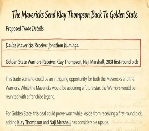 3换1!重磅交易方案出炉,独行侠迎库明加,克莱重回勇士